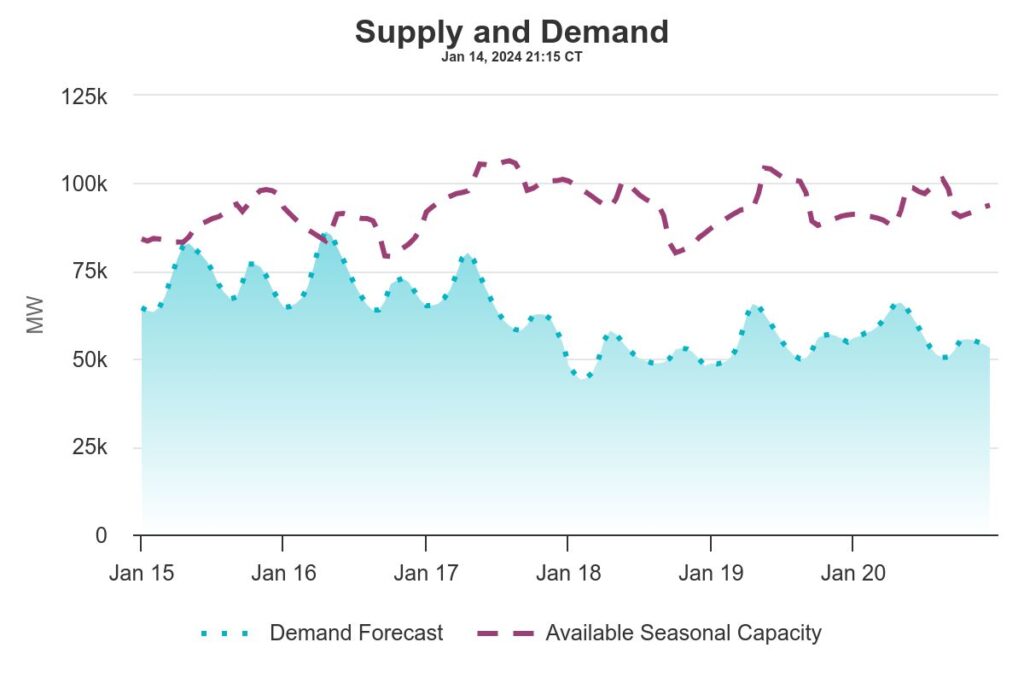 “To bolster system reliability, SPP may require generating units to be available for upcoming operating days with notifications for commitment issued multiple days in advance. SPP took these steps in preparation for the extreme weather conditions already experienced and expected over the next couple of days,” it said.